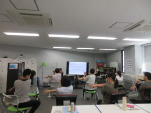 講座の後半では実際にストレッチをしました。椅子に座りながら短時間で行えるので作業中に一息つくときなどによさそうでした。体が思ったよりも曲がらず、筋肉が悲鳴のように痛みをあげていて運動不足を実感しましたが、やる前より体の緊張がほぐれていて「効く」感じがありました。