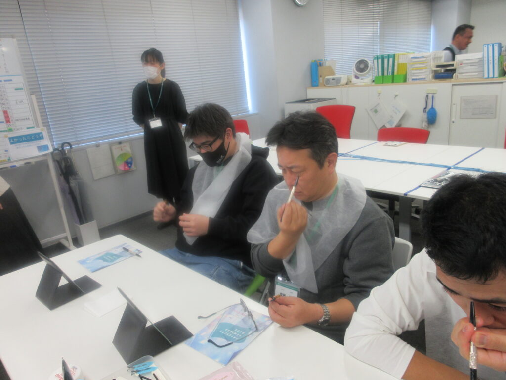 化粧の仕方については、普段ファンデーションを付け過ぎてしまうことがよくありましたが、実際に体験をし、パフに一度付けて半分の顔が終わるまで付け足さないということが重要だと感じました。後日、その方法でやってみたら上手く出来たので良かったです。